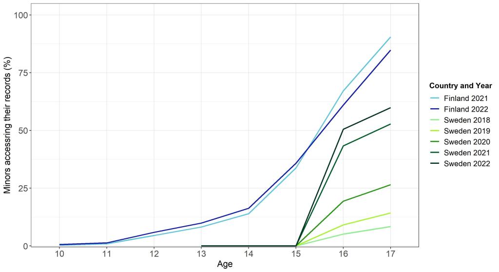 - Ungdomar loggar in på sin journal ju äldre de blir, både i Sverige och Finland.